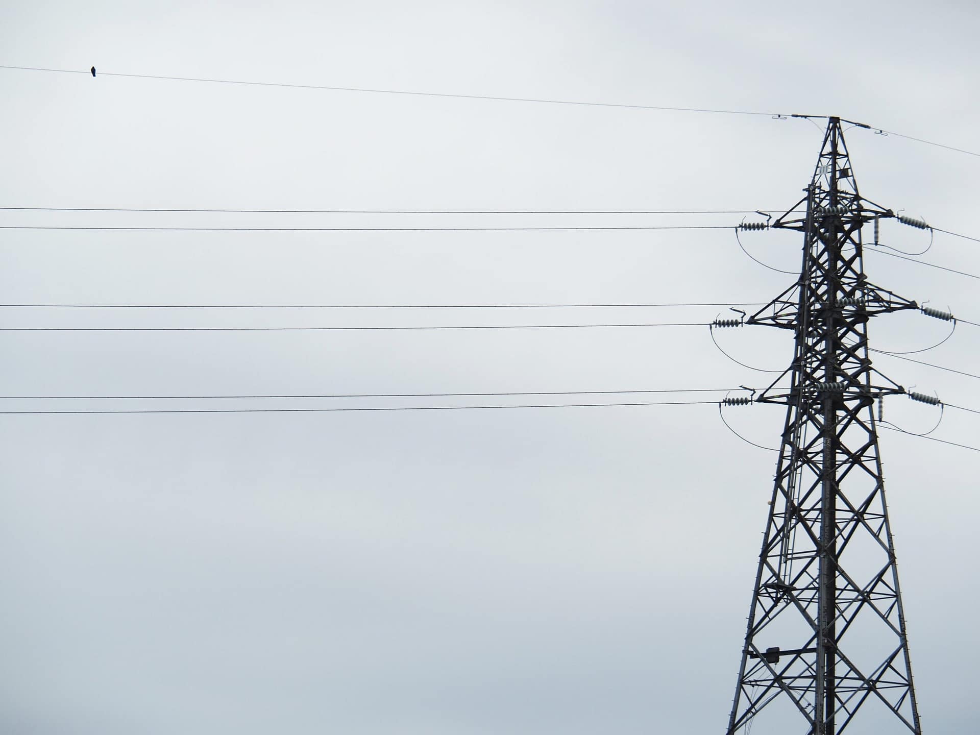 遠く、電線にカラス。